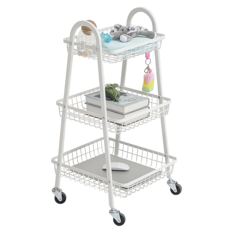 Táto trojposchodová odkladacia polica na kolieskach je praktickým riešením do kúpeľne, kuchyne alebo aj iných miestností. Pomocou nej môžete ľahko usporiadať predmety každodenného použitia a zároveň zabezpečiť úsporu miesta.
