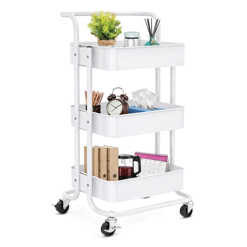 Tento trojposchodový regál na kolieskach je praktickým riešením do kuchyne, kúpeľne alebo iných miestností. Pomocou neho môžete ľahko usporiadať rôzne nástroje a potreby a zároveň zabezpečiť úsporu miesta.