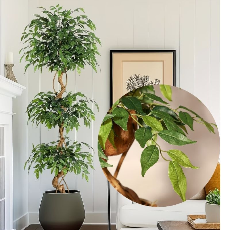 Tento elegantný umelý fikus s ohnutým kmeňom môže vďaka svojmu prirodzenému vzhľadu byť štýlovým doplnkom obývacej izby, kancelárie, predsiene alebo dokonca zasadacej miestnosti. Viacúrovňová, bohatá koruna a kmeň s efektom skrútenia zaisťujú modernú, a pritom nadčasovú dekoráciu – bez polievania, strihania a opadávajúcich listov.