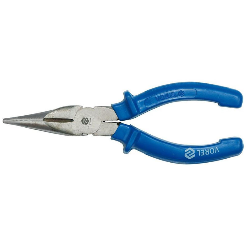 Dlhé kliešte VOREL sú ideálnou voľbou pre precízne aj montážne práce. Ich rovné čeľuste s dĺžkou 200 mm majú vrúbkovaný povrch, ktorý zaručuje pevné uchopenie. Profilované rezné hrany umožňujú jednoduché strihanie drôtov a klincov.