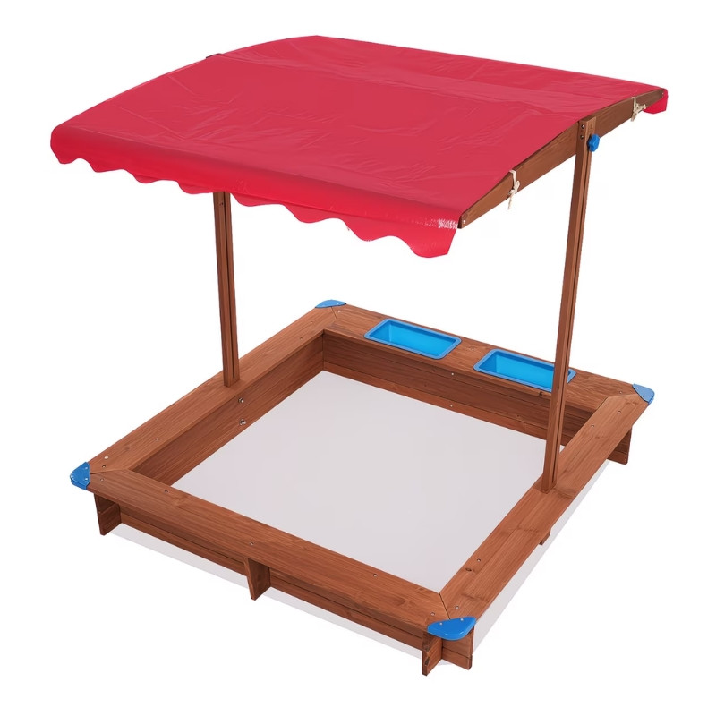 Toto odolné pieskovisko z prírodného dreva je ideálnou voľbou do záhrady alebo na dvor, kde si deti môžu bezpečne a v tieni hrať. Nastaviteľná markíza poskytuje účinnú ochranu pred silným slnkom, takže hranie zostane príjemné aj v tých najteplejších dňoch.