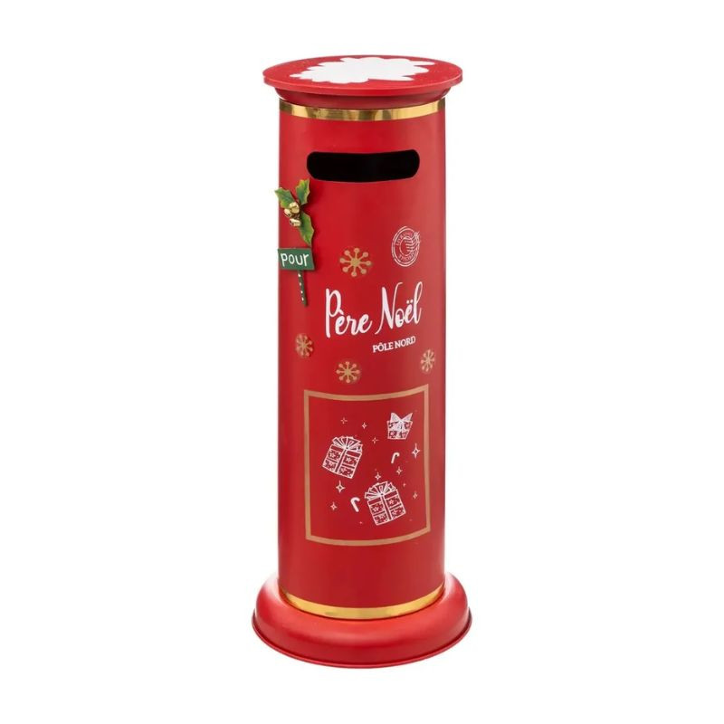 Prineste vianočnú atmosféru do svojho domova alebo obchodu! Táto nádherná, 80 cm vysoká, klasická červená kovová poštová schránka nie je len dekoráciou, ale aj strážkyňou detských snov. Ozdobená nápismi „Père Noël“ (Vianočný otec) a „Pôle Nord“ (Severný pól) a roztomilými ilustráciami darčekových škatúľ, deti môžu vložiť svoje zoznamy želaní do zbernej schránky, čím sa prípravy na sviatky stanú naozaj nezabudnuteľnými.