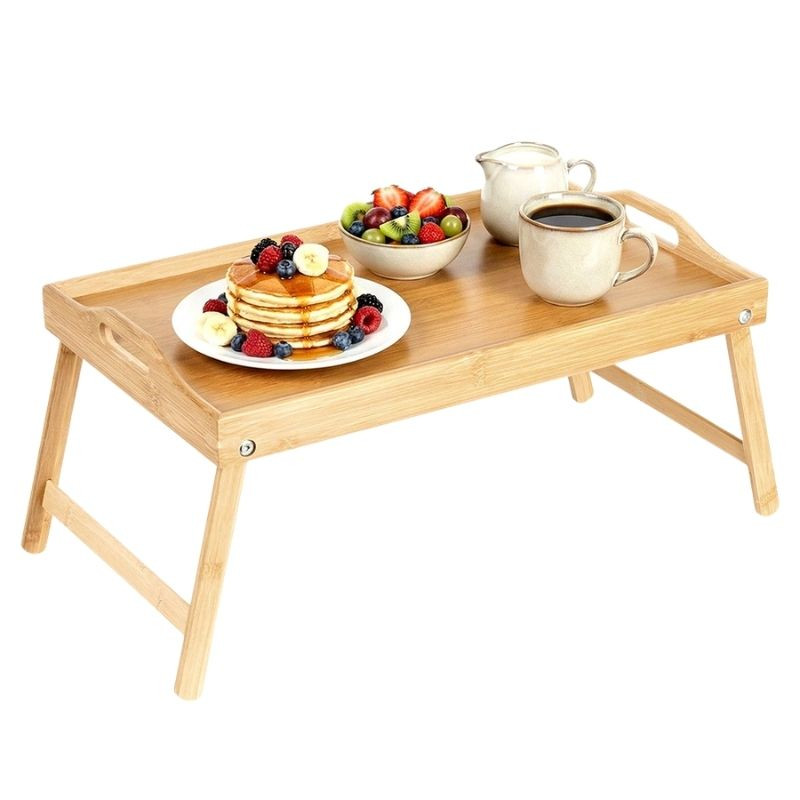 Praktický a štýlový bambusový raňajkový stolík, ktorý je ideálnou voľbou na raňajky v posteli, pohodlné stolovanie alebo dokonca na používanie notebooku. Vďaka konštrukcii 2 v 1 sa dá po sklopení nôh použiť aj ako tác.