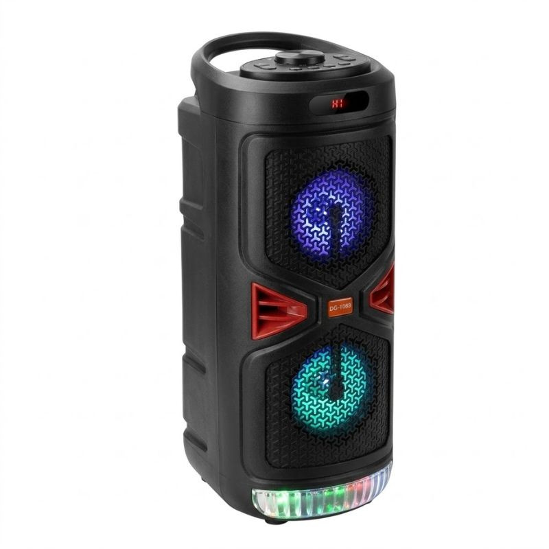 Vytvorte tú najlepšiu party atmosféru kdekoľvek s týmto efektným a kompaktným party reproduktorom! Model DG-1069 s dvojitými reproduktormi a ohromujúcou svetelnou technikou zaručuje, že hudba nebude len dobre znieť, ale aj vizuálne oživí večer. Či už ide o divokú domácu párty, grilovanie na záhrade alebo spontánnu karaoke párty, tento dobíjateľný zvukový systém bude vaším spoľahlivým spoločníkom pri zábave.