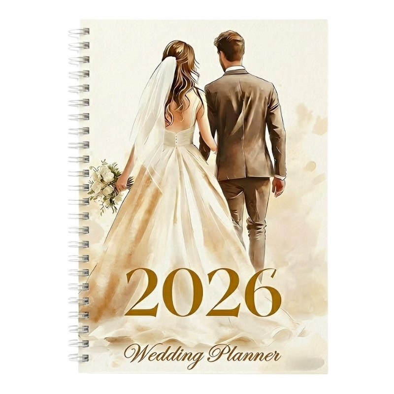 Tento štýlový svadobný plánovací zošit zdobený motívom nevesty a ženícha je ideálnou voľbou na zorganizovanie všetkých detailov veľkého dňa. S jeho pomocou môžete ľahko naplánovať dôležité prvky svadby, od šiat cez obrad až po hostinu.