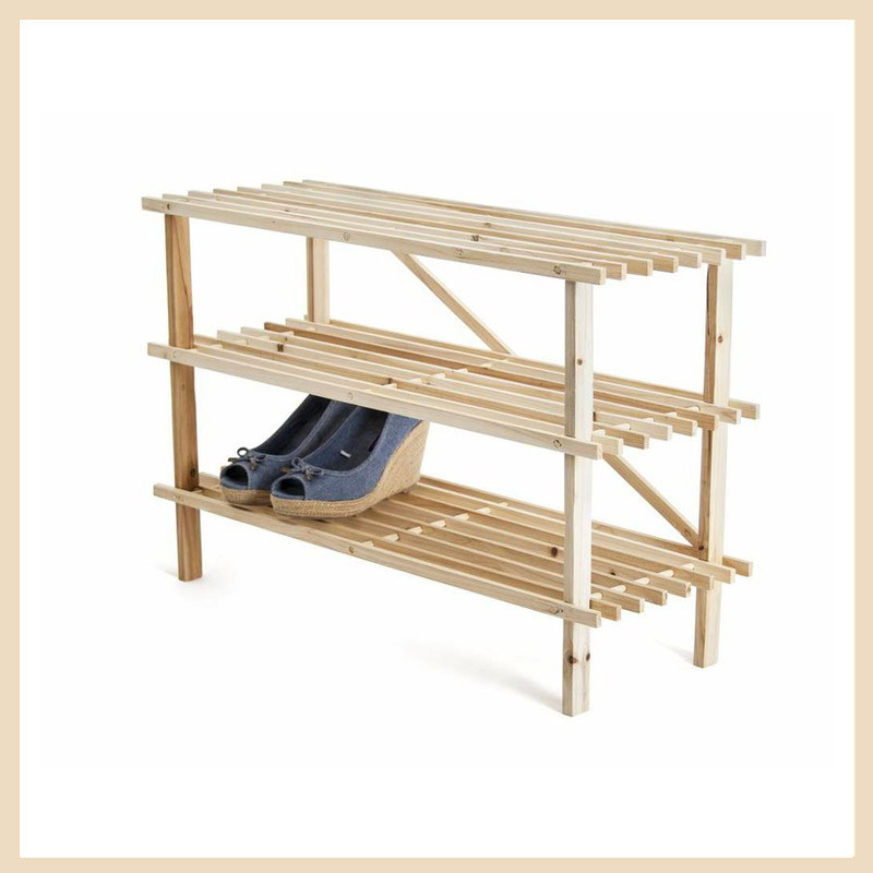 Poschodový zásobník na topánky s rozmermi 26 x 74 x 48,5 cm je ľahko zostaviteľný. Poskytuje dostatok miesta pre všetky vaše topánky. Zásobník je pevný, takže je vhodný aj na uloženie iných predmetov alebo na vystavenie vnútorných kvetov. Zásobník na topánky je vyrobený z borovice a dodáva sa nefarbený.
