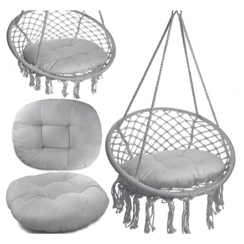 Závesné hojdacie kreslo s vankúšom, sivé KR33SZ