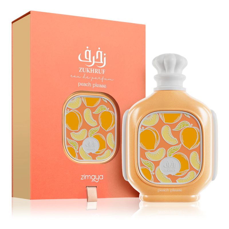 Zimaya Zukhruf Peach Please je unisex parfém založený na kombinácii intenzívnych ovocných a sladkých, krémových tónov. Vôňa reprezentuje moderný „gurmánsky“ trend s dôrazom na šťavnaté broskyne a ich rôzne textúry. Horné tóny Broskyňa, krvavý pomaranč, kardamóm, heliotrop Stredné tóny Rum, koňak, jazmín, davana Základné tóny Indonézske pačuli, vanilka, santalové drevo, tonkové bôby, benzoín, styrax, kašmír
