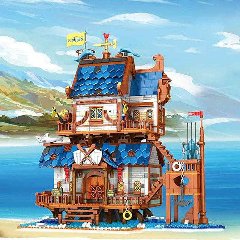 Táto jedinečná stavebná sada znázorňuje stredovekú rybársku chatu inšpirovanú historickými a kultúrnymi prvkami. Stavebnicu tvorí celkom 2450 stavebných kociek a pri jej skladaní ožíva pokojný, mierumilovný život na pobreží, ako keby ste sa ocitli v rozprávkovom svete.