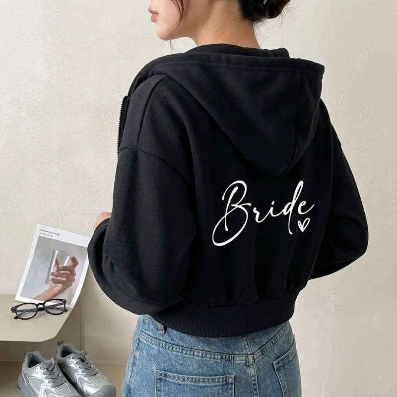 Táto štýlová dámska mikina s kapucňou je perfektnou voľbou pre nevesty pri prípravách na veľký deň alebo aj ako darček. Nápis „Bride“ zaisťuje čistý, elegantný vzhľad a zároveň ponúka pohodlné nosenie.