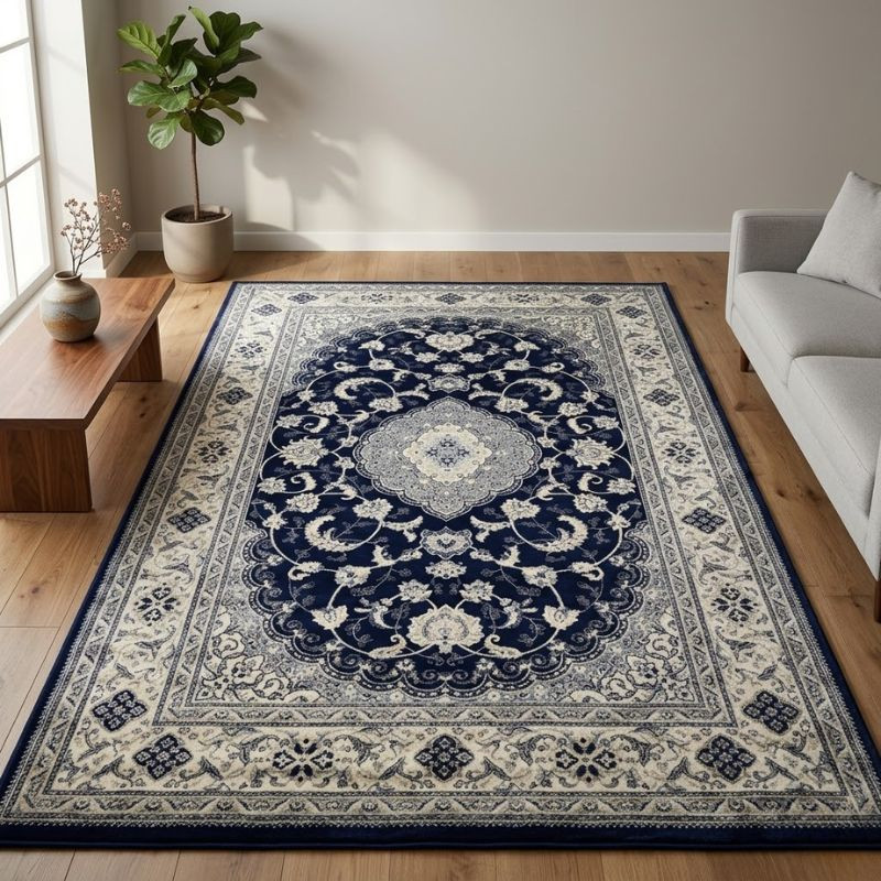 Bohato spracovaný stredný motív a detailný ornamentálny lem predstavujú nadčasový štýl. Husto tkaná povrchová úprava je odolná, príjemná na dotyk a ľahko sa čistí, čo z neho robí ideálnu voľbu pre každodenné použitie.