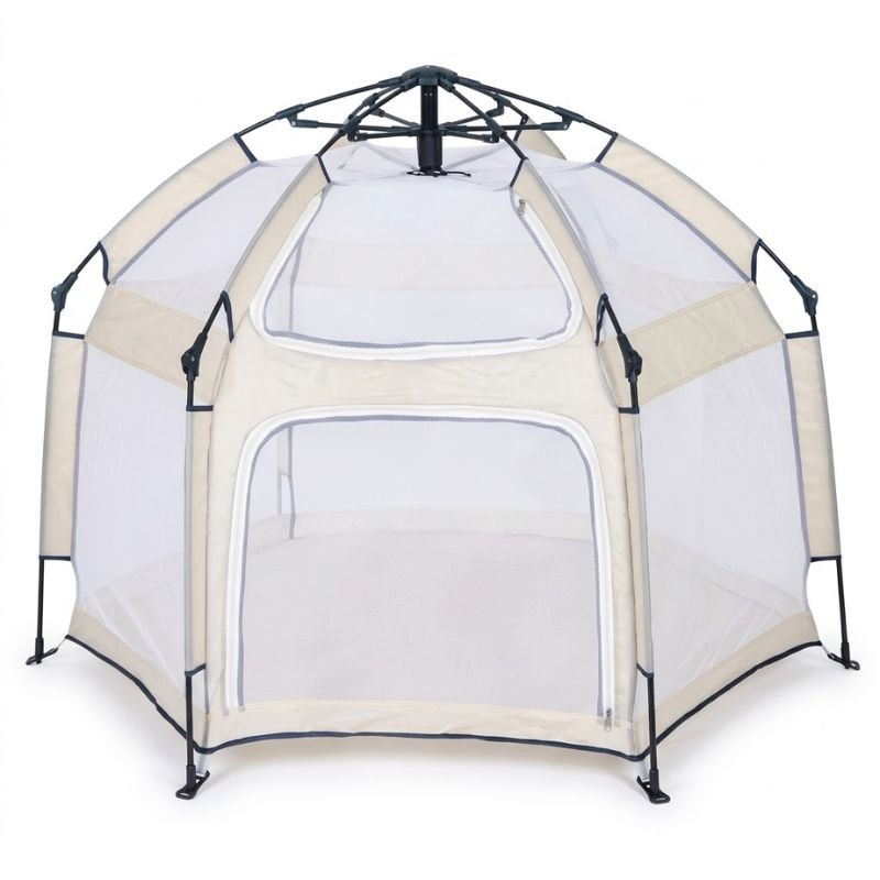 Skladací detský hrací stan so sieťovanými bočnými stenami béžový BW-007