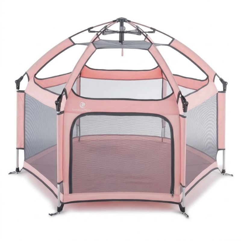 Skladací detský hrací stan poskytuje malým deťom bezpečný a pohodlný priestor na hranie. Konštrukcia stanu ponúka priestranný vnútorný priestor, kde si deti môžu pokojne hrať, zatiaľ čo sieťované bočné steny umožňujú neustály dohľad.