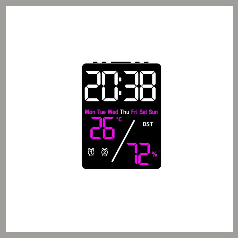 DH-5508 sú kompaktné digitálne hodiny s moderným vzhľadom a farebným displejom ktoré zároveň zobrazujú čas dátum deň v týždni teplotu aj vlhkosť vzduchu. Čistý ikonický dizajn z nich robí skvelú voľbu do domácnosti kancelárie aj spálne.