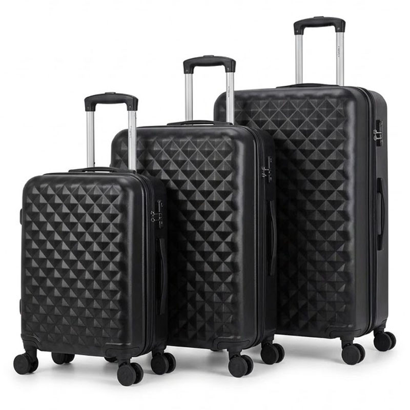 Cestujte štýlovo a bezpečne s touto elegantnou sadou kufrov s jedinečnou textúrou s diamantovým vzorom! Moderný dizajn je nielen estetický, ale vďaka špeciálnemu 3D povrchu sú kufre oveľa odolnejšie voči škrabancom a vonkajším vplyvom.