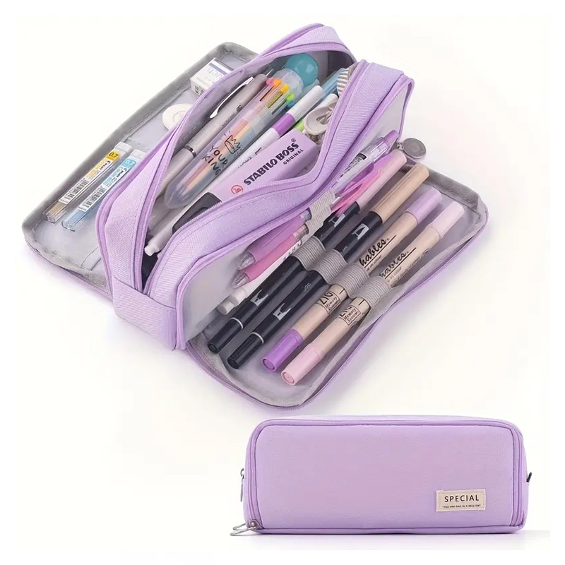 Módne viacvrstvové puzdro na ceruzky s dvojitým priestorom, fialové DK1514948-L