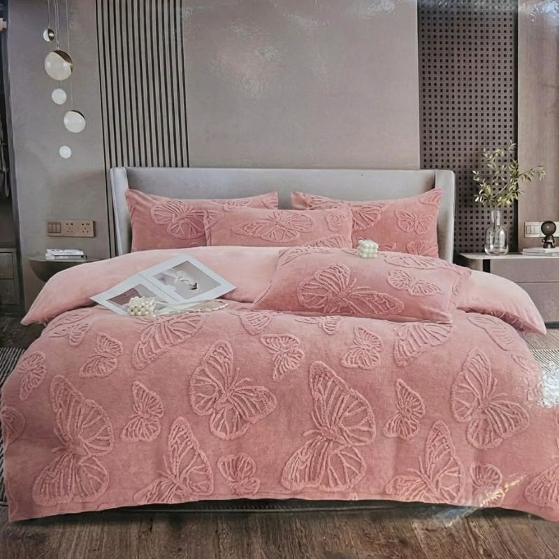 Sada značky Violet spája kvalitu a estetiku. Jemný reliéfny motýlí vzor na povrchu obliečok dodáva posteli jedinečný a elegantný vzhľad. Sada má praktické zloženie: okrem plachty obsahuje dva obliečky na periny a štyri obliečky na vankúše (v dvoch veľkostiach), takže ňou môžete jednotne obliecť celú manželskú posteľ.