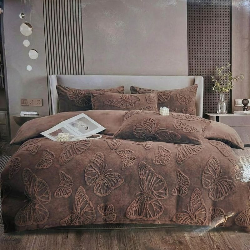 Sada značky Violet spája kvalitu a estetiku. Jemný reliéfny motív motýľov na povrchu obliečok dodáva posteli jedinečný a elegantný vzhľad. Sada má praktické zloženie: okrem plachty obsahuje dva obliečky na periny a štyri obliečky na vankúše (v dvoch veľkostiach), takže ňou môžete jednotne obliecť celú manželskú posteľ.