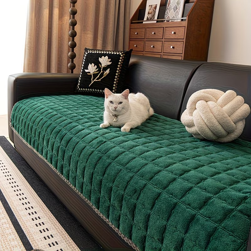 Prešívaný poťah na pohovku z mliečneho zamatu 90 × 180 cm – tmavozelený FE11156782-12