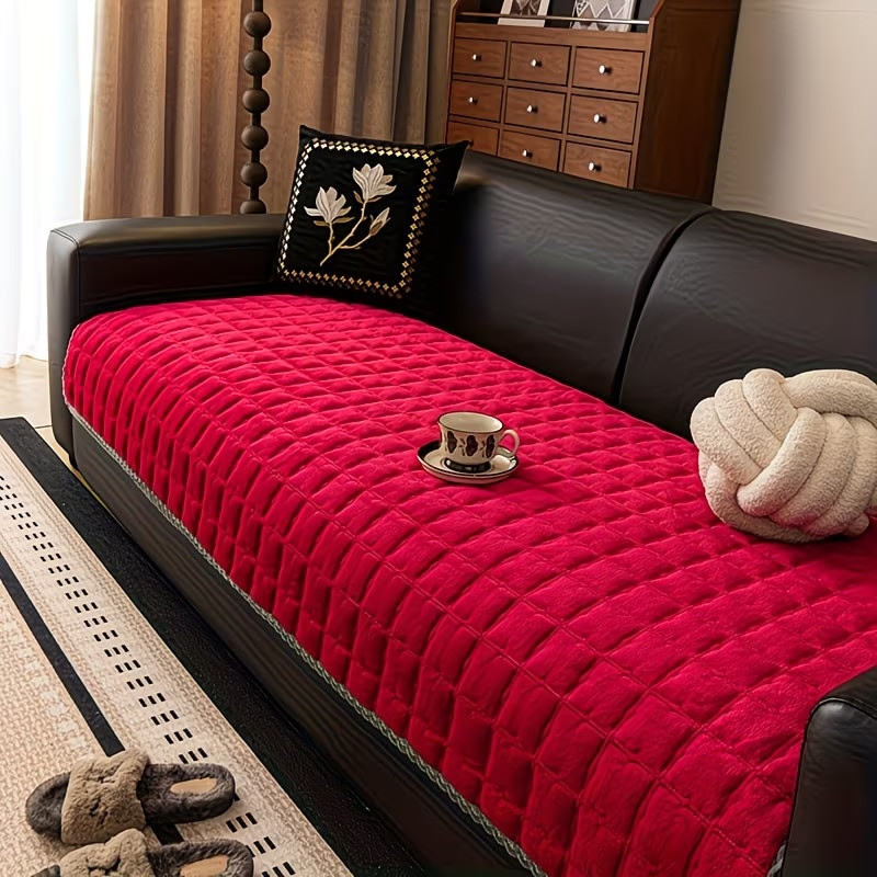 Prešívaný poťah na pohovku z mliečneho zamatu 90 × 180 cm – bordová FE11156782-14