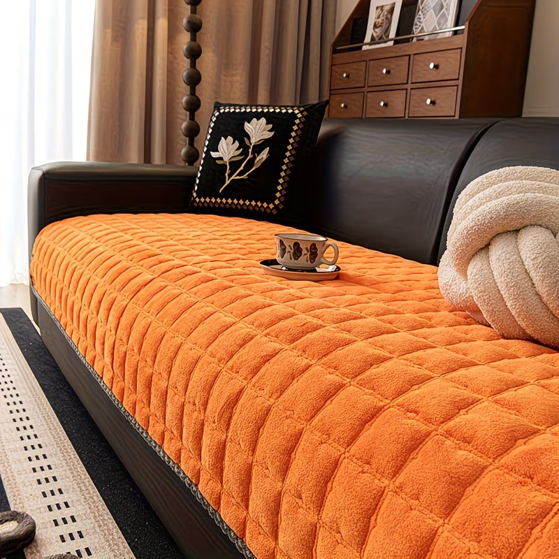 Prešívaný poťah na pohovku z mliečneho zamatu 90 × 180 cm – oranžový FE11156782-16