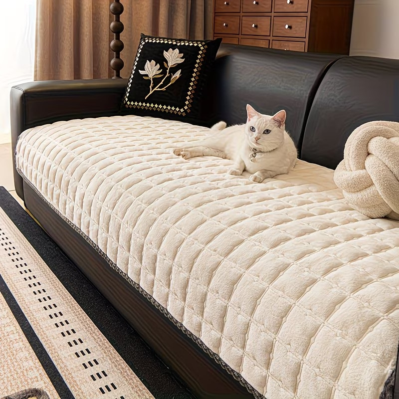 Prešívaný poťah na pohovku z mliečneho zamatu 70 × 180 cm – biely FE11156782-4
