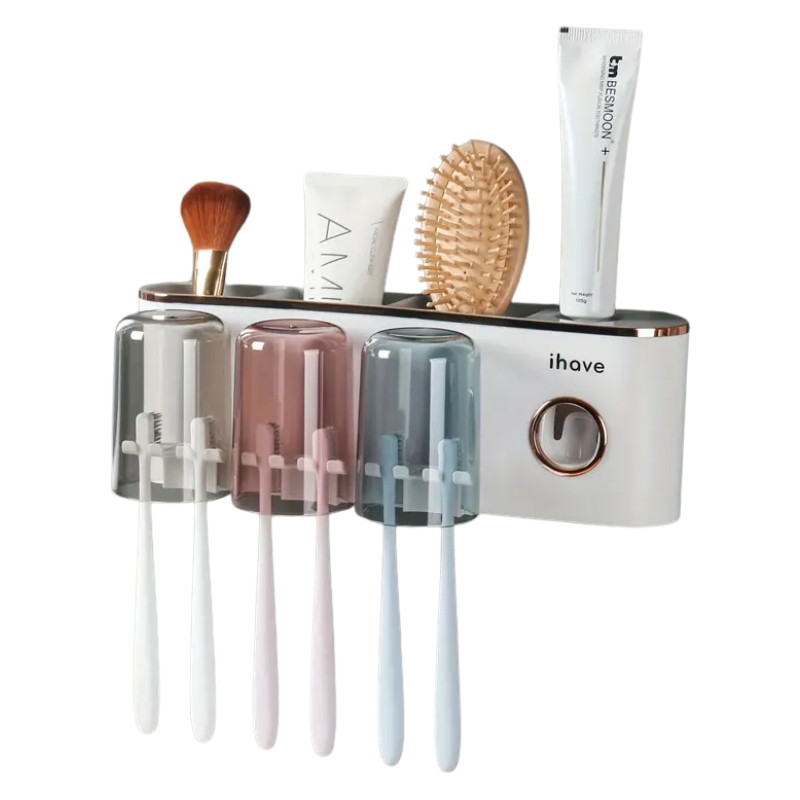 Moderný a praktický nástenný držiak na zubné kefky je ideálnym riešením na udržanie poriadku v kúpeľni. Vstavaný dávkovač zubnej pasty umožňuje jednoduché a hygienické vytlačenie potrebného množstva pasty, zatiaľ čo priehľadné valcovité kryty chránia kefky pred prachom a nečistotami.
