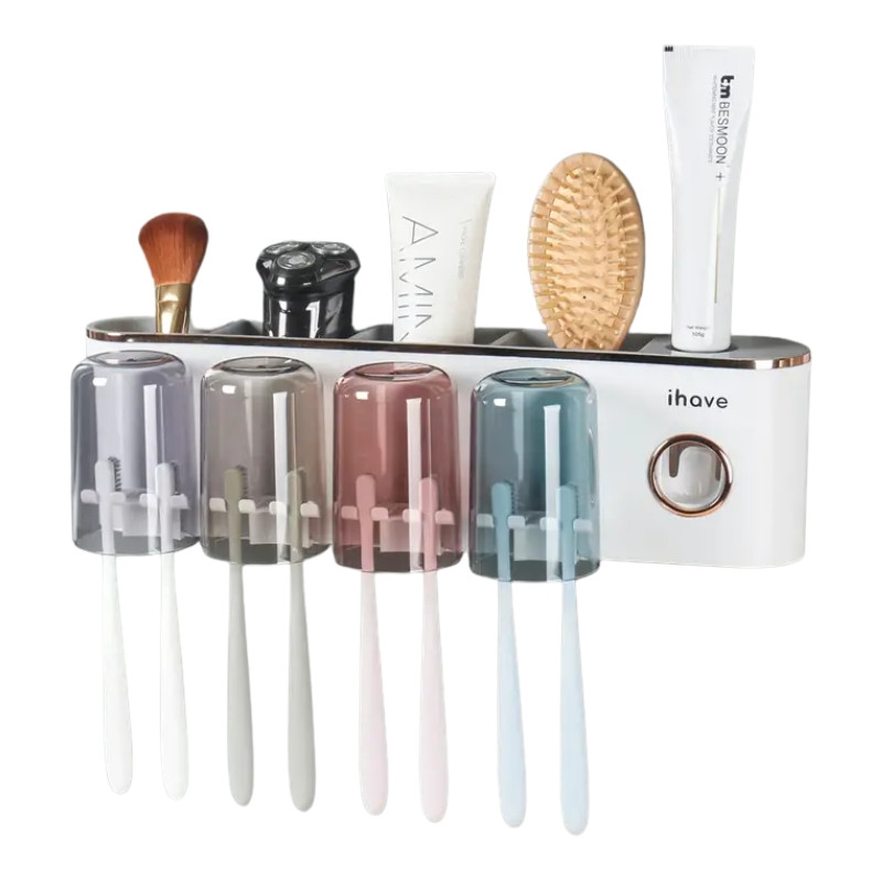 Moderný a praktický nástenný držiak na zubné kefky je ideálnym riešením na udržanie poriadku v kúpeľni. Vstavaný dávkovač zubnej pasty umožňuje jednoduché a hygienické vytlačenie potrebného množstva pasty, zatiaľ čo priehľadné valcovité kryty chránia kefky pred prachom a nečistotami.