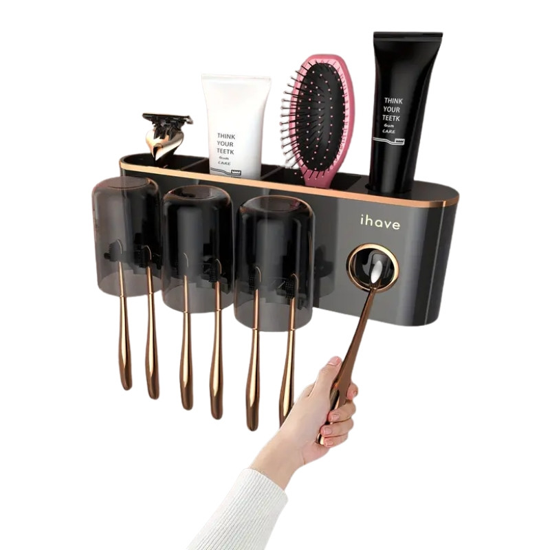 Nástenný držiak na zubné kefky s dávkovačom zubnej pasty stredný čierny LH13115-5