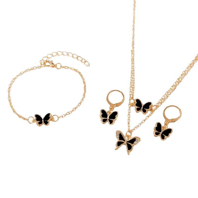 Kúsky v sade majú jednotný dizajn: na dvojitom náhrdelníku je výraznejší motýľ, zatiaľ čo na náramku a náušniciach sú jemnejšie motýlie motívy. Veľkosť a štýl šperkov umožňuje, aby sa hodili na svadby, večierky alebo dokonca ako prekvapenie ku Dňu matiek.