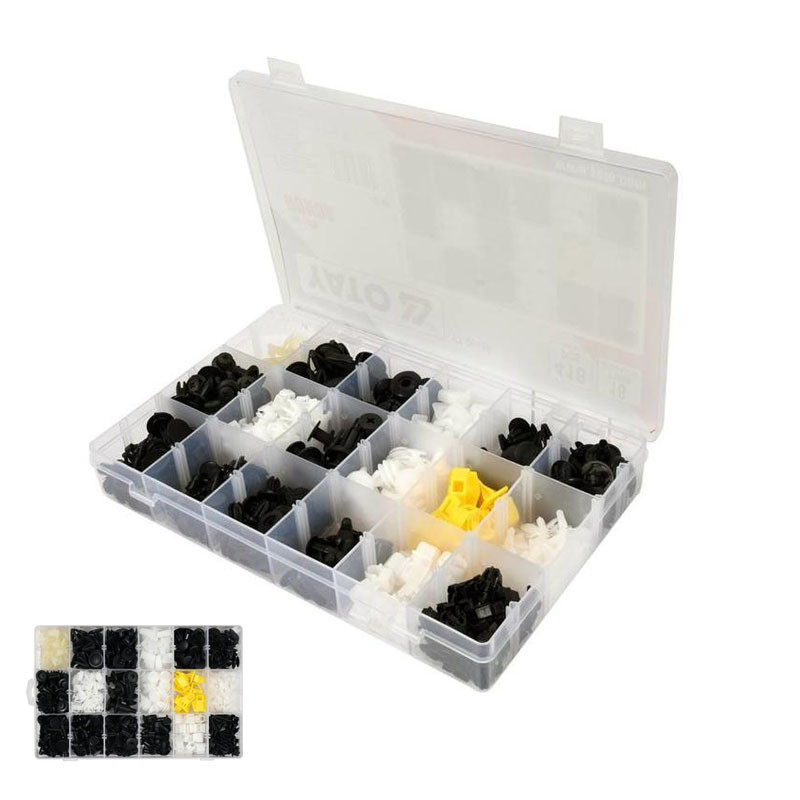 Táto 418-dielna sada plastových upevňovacích prvkov pre vozidlá Honda je univerzálna a dá sa použiť na rôzne upevňovacie prvky v automobiloch. Sponky sú ideálne na upevňovanie nárazníkov, krytov, blatníkov, obloženia dverí a plastových komponentov v motorovom priestore a batožinovom priestore. Hodí sa aj na upevňovanie mriežok chladiča, poťahov sedadiel a iných interiérových obkladov. Technické údaje: Kompatibilita: vozidlá Honda Množstvo: 418 kusov