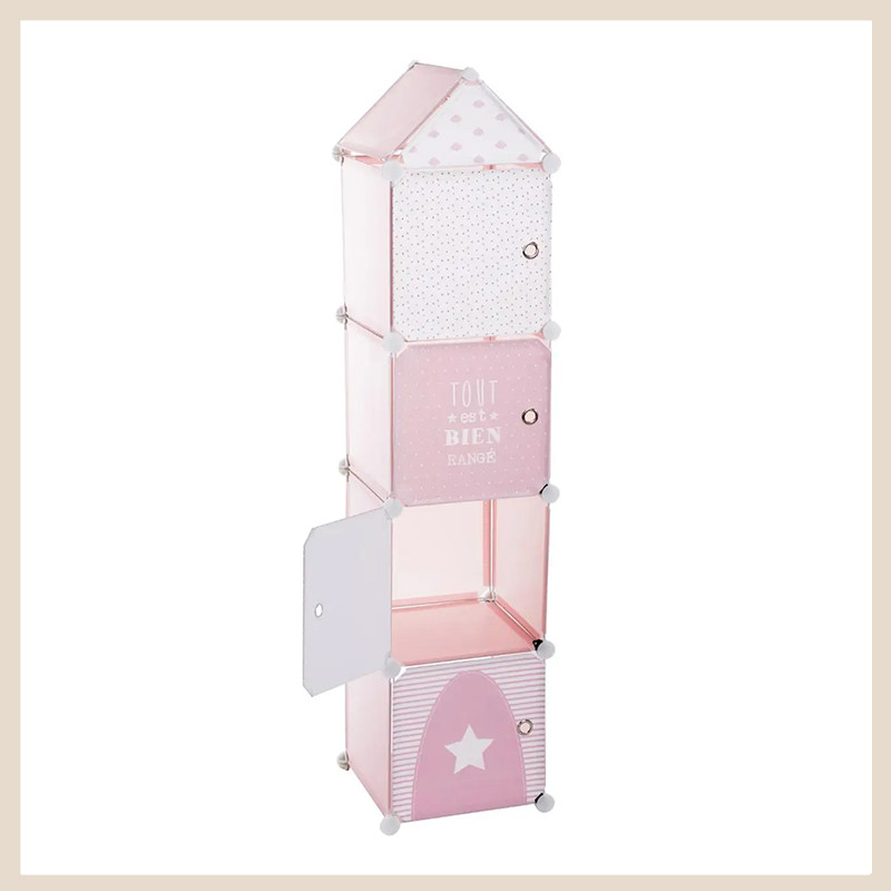 Praktický úložný systém v stĺpikovom dizajne, ktorý je ideálny do detskej izby na prehľadné usporiadanie hračiek, oblečenia a rôznych drobností. Vďaka stabilnej konštrukcii a otvárateľným dvierkam sa veci ľahko ukladajú aj vyberajú, pričom boxy pomáhajú udržať poriadok každý deň.