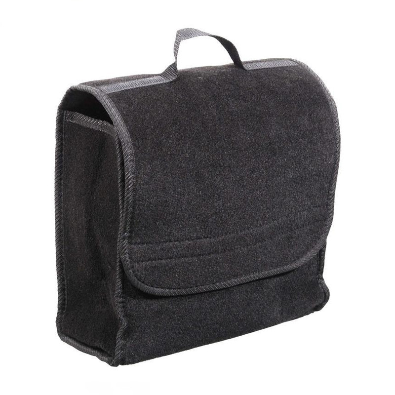 Táto praktická čierna textilná taška je ideálna na prehľadné uloženie menšieho náradia, autopríslušenstva, čistiacich prostriedkov alebo nákupu v kufri auta. Zapínanie na suchý zips umožňuje rýchly prístup, pevné uši uľahčujú prenášanie a suché zipsy na zadnej strane zabezpečia stabilné uchytenie k čalúneniu batožinového priestoru.