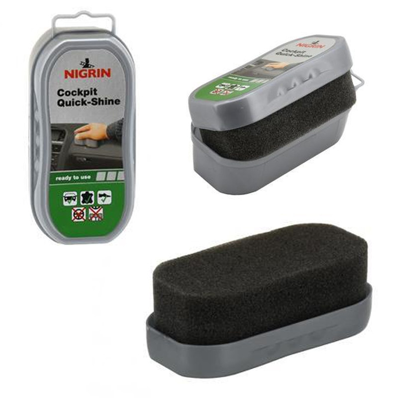 NIGRIN hubka na ošetrenie palubnej dosky je praktické riešenie na rýchle a účinné čistenie a údržbu vnútorných povrchov vozidla. Silikónová emulzia poskytuje dlhodobý matný a hodvábny lesk na palubnej doske, koži aj plastoch a zanecháva príjemnú citrusovú vôňu.