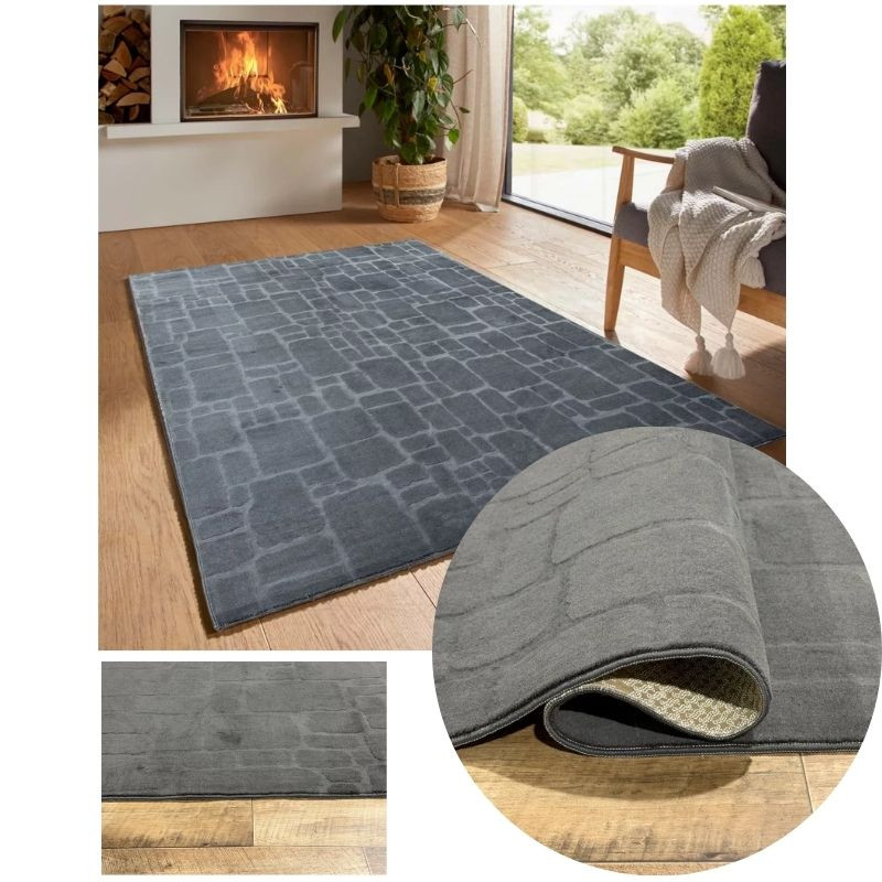 Bergamo plyšový koberec s jemným povrchom, antracitová farba, 150 x 220 cm bergamorandomantracit-150